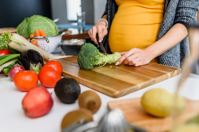 Debido a la gestación, el gasto calórico es mayor (aunque no para comer por dos) y se producen síntomas como estreñimiento, náuseas y otros muy comunes que debemos solventar con la alimentación.
